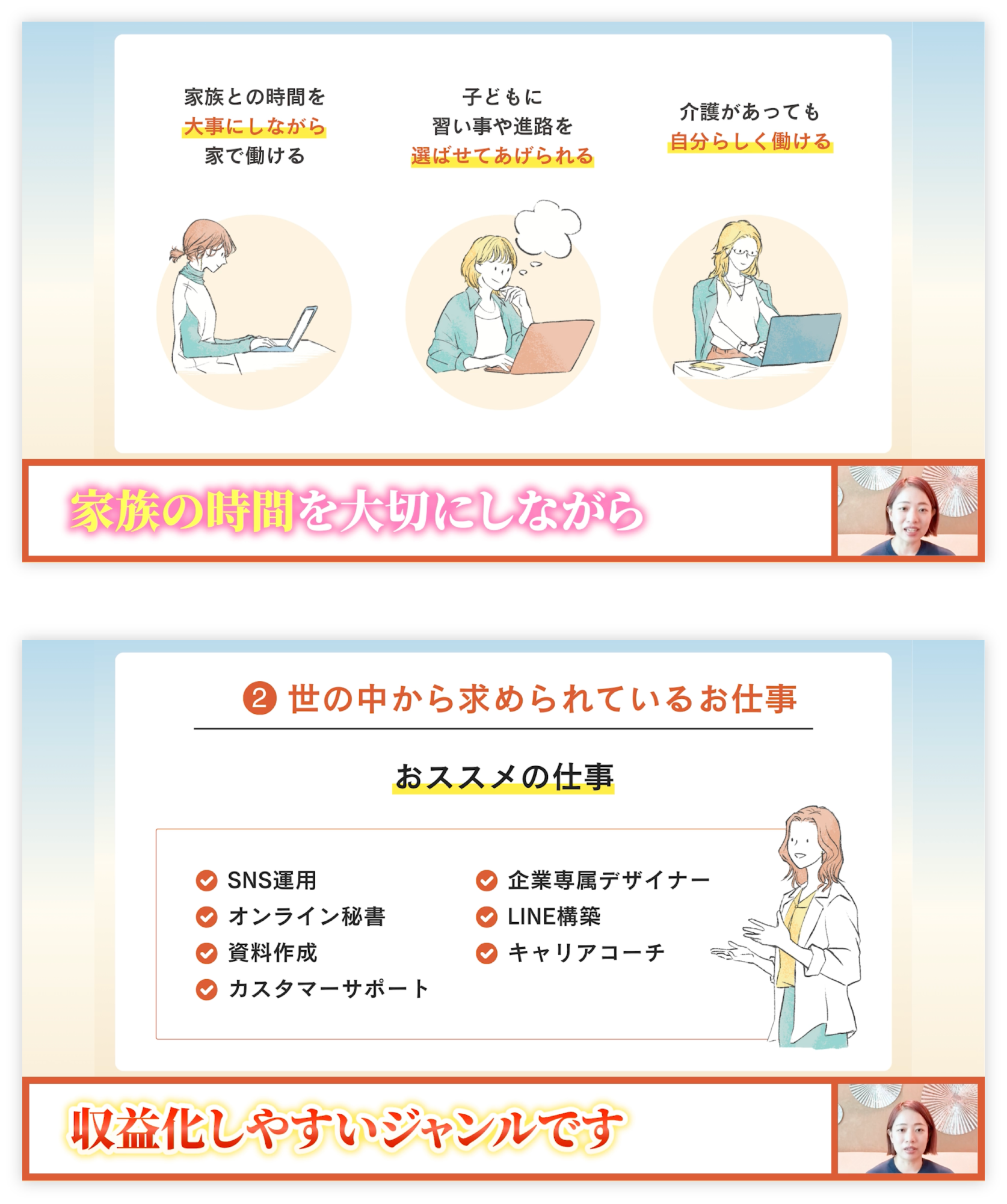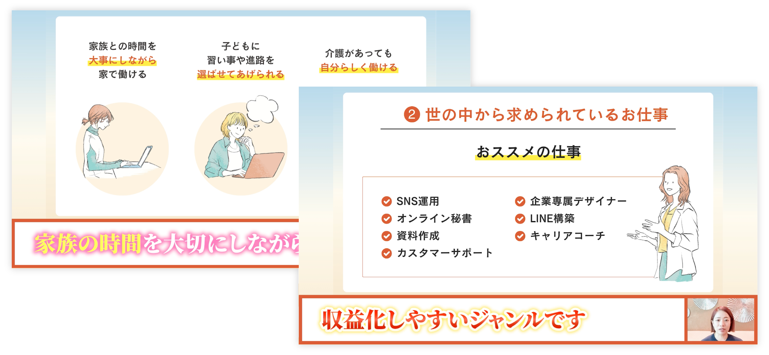 今では前職の収入を超えてオンライン秘書として企業をサポートし、やりがいのある日々を過ごしています!