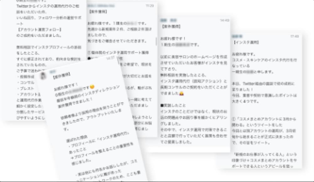 最短2週間で案件を獲得されている方もいらっしゃいます。SNSからの集客を実現されている方がほとんどです。